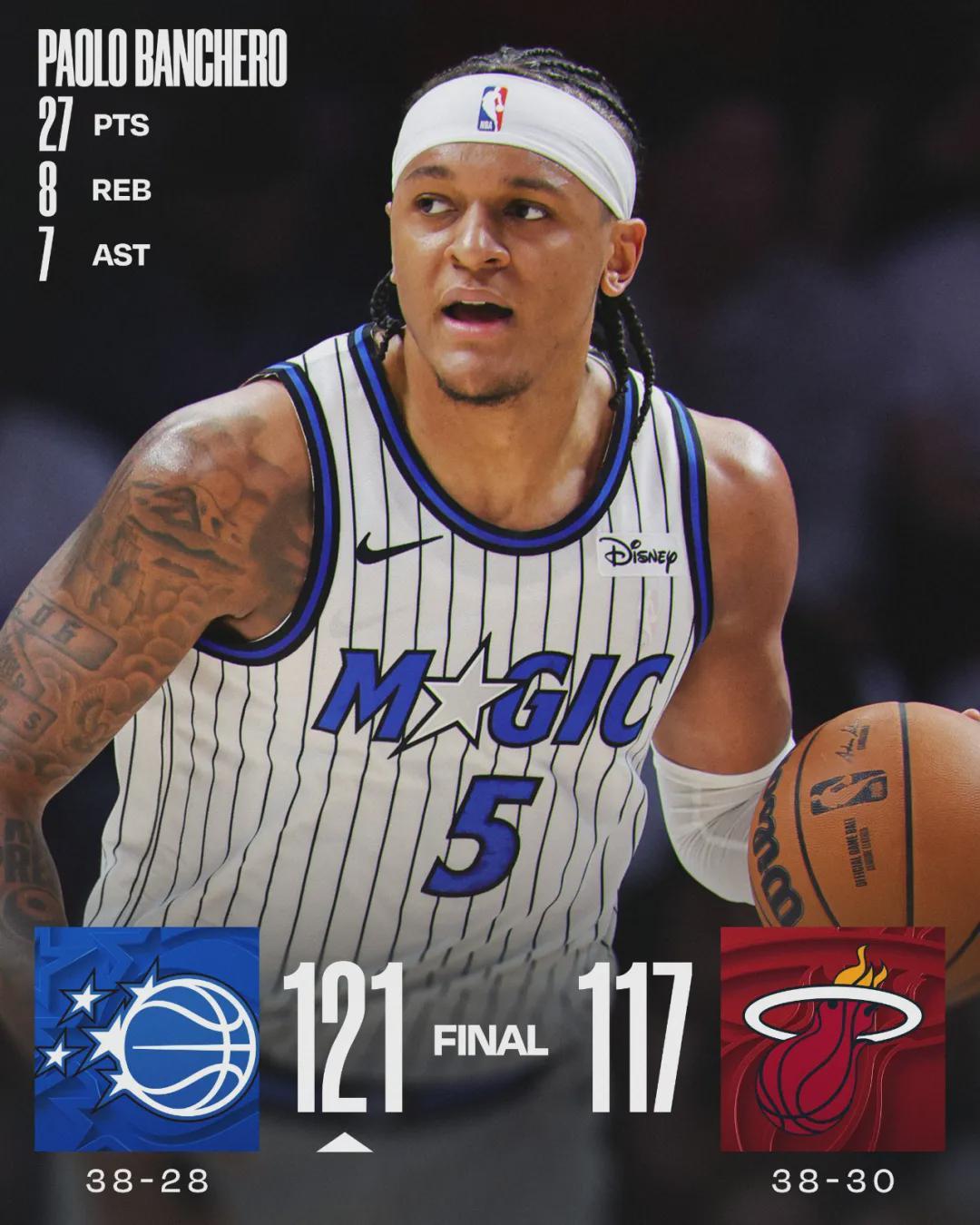 北京时间3月15日,NBA常规赛:魔术121-117击败热火,本赛季魔术5-0横扫热火。常规赛最多交手4次,哪里来的5次?因为有1次对决是在NBA杯(非决赛),同样算常规赛战绩。这是21世纪以来,NBA第二次出现单赛季5杀!
